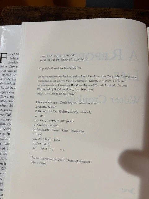 Reporter's Life by Walter Cronkite (1996, Hardcover)