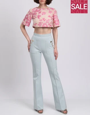 RRP€350 BLUMARINE Jacquard Cropped Top Size S Floral Short Sleeve Crew Neck