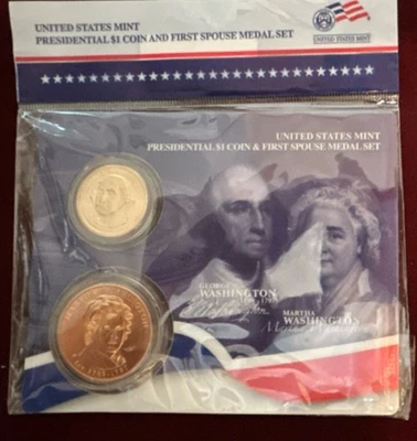 United States Mint Presidential $1 Coin & Spouse Medal Set Washington Bronze
