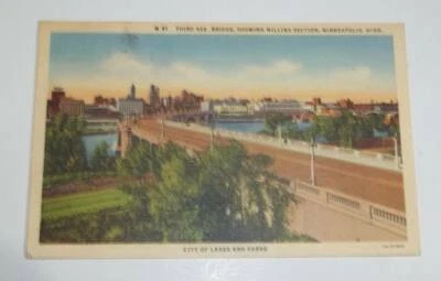 Vintage Third Avenue Bridge Milling Station Minneapolis Minnesota Postcard 1942