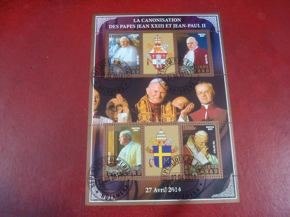 CHAD - 2014 1050fr POPES (2) - MINISHEET - UM USED MINIATURE SHEET