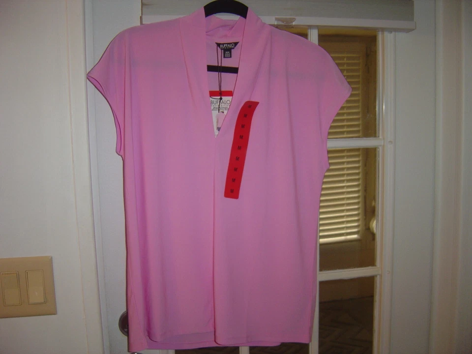 New Buffalo David Bitton Ladies' Short Sleeve V-Neck Top, Pink, Size Medium