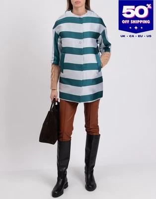 RRP€239 ANNIE P Longline Jacket IT42 US6 UK10 M Silk Blend Striped 3/4 Sleeve