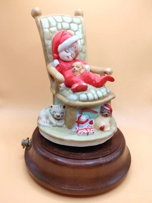Night Before Christmas Vintage Silent Night Revolving Music Box Sleeping Child