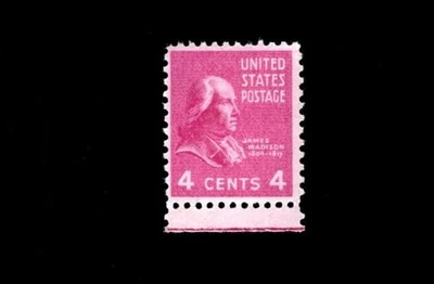 USA, Scott #808, 1938 James Madison 4-Cent Prexie, Bottom Margin Attached, MNH