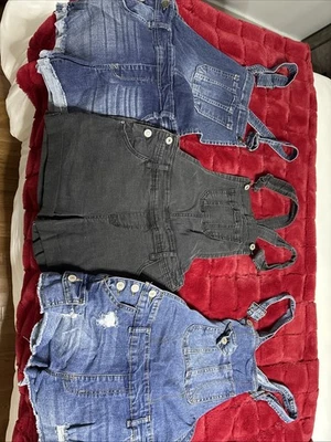 WallFlower Blue Denim Overalls Jeans Shorts Medium Waist 32" Inseam 3" 1796