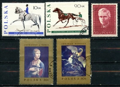Poland 1967, Scott # 1474, 1478, 1518, 1551, 1553, used, lightly hinged.