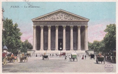 Antique P/C 1907 La Madeleine Paris France Church of Saint Mary horse carriages
