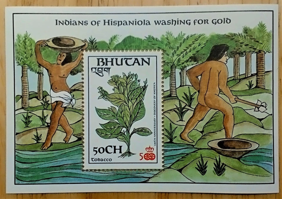 VINTAGE CLASSICS - Bhutan 1987 - Hispaniola Gold, Tobacco - Souvenir Sheet - MNH