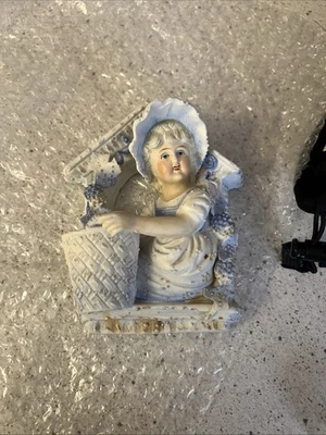 Ceramic Figurine, Sitting In A Window Or Well Window With A Pale
