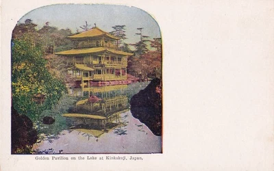 Vintage 1910 color divided back the Golden Pavilion in Kyoto Japan