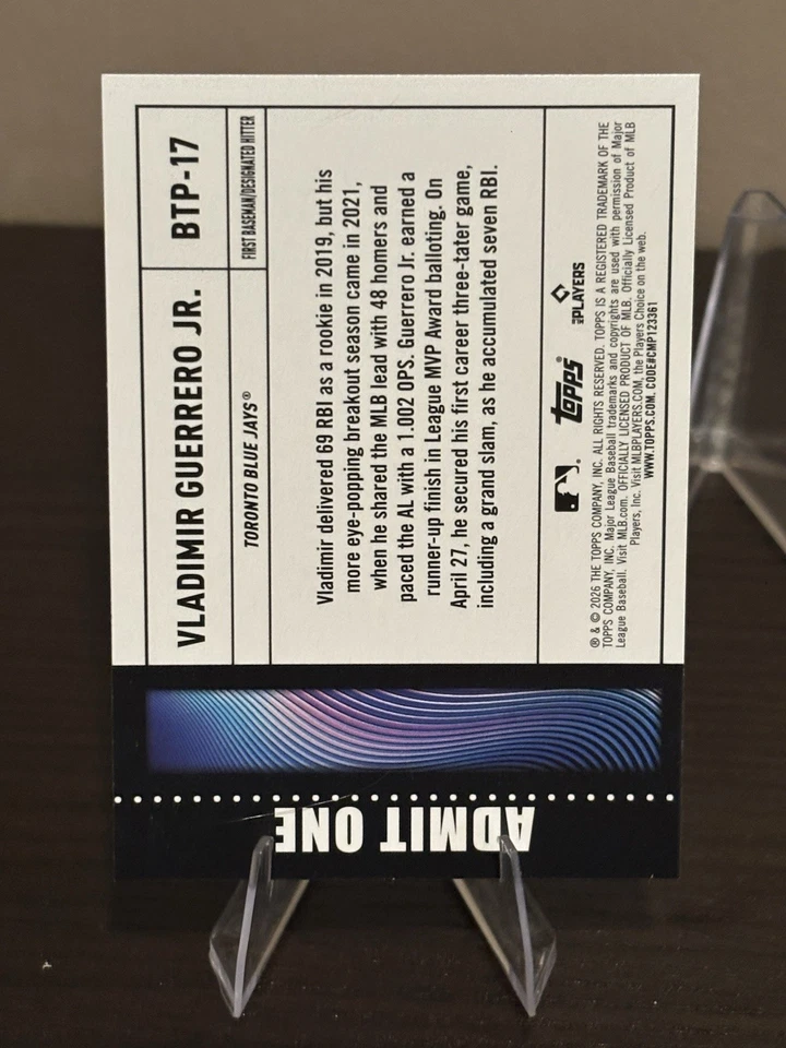 2026 TOPPS SERIES 1 BIG TICKET PLAYER VLADIMIR GUERRERO JR BLUE JAYS #BTP-17