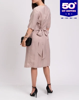 RRP€350 PESERICO Satin Shift Dress IT42 US6 UK10 M Lined Bow Back Made in Italy