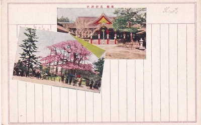 Vintage 1910 color divided back Kyoto Japan Historic Temple Cherry blossoms