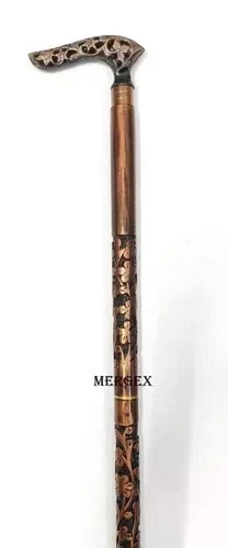 Designer Wooden Cane Walking Stick Solid Brass Handle For Men Women Gift