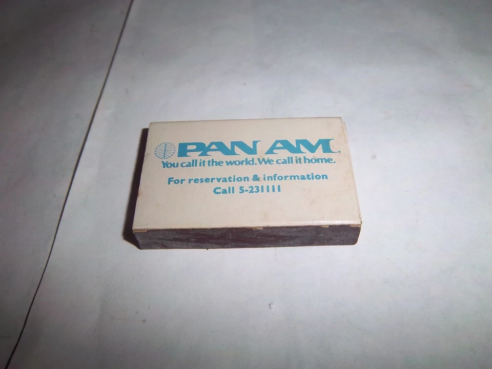 PAN AM AIRLINES Vintage *ADVERTISING MATCHBOX* Ex Cond LEE GARDENS HOTEL H KONG