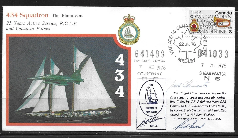 Canada - 1976 RCAF Commemorative CF-5 Flight Cover - CFB Comox to CFB Shearwater