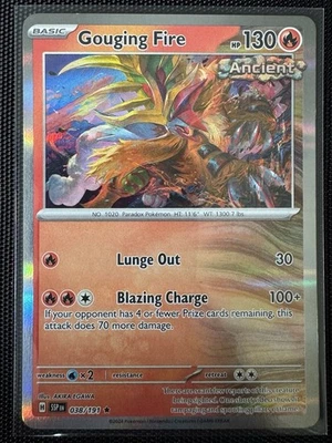 Pokémon Gouging Fire 038/191 Sv08: Surging Sparks 130HP Holo Rare Basic TCG Card