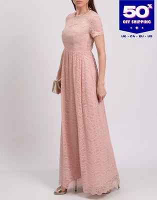 RRP €440 BY MALINA CLAIRE Lace Maxi A-Line Dress Size M Open Back Crew Neck