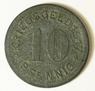 GERMANY (Mettmann) 10 Pfennig 1917 - Zinc - Kriegsgeld - VF- - 4064