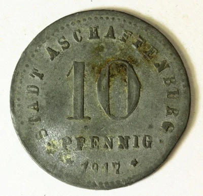 GERMANY (Aschaffenburg) 10 Pfennig 1917 - Zinc - Notgeld - VF- - 4067