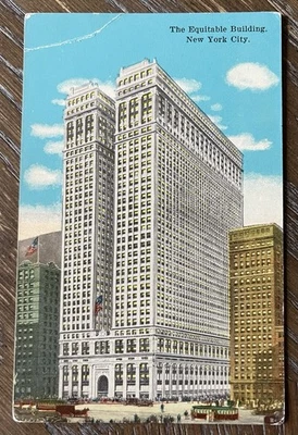 The Equitable Building NY NY Postcard ~ Street Scene ~ Trolley, Horse & Buggy
