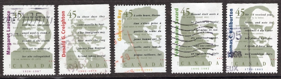 Canada used lot CANADIAN AUTHORS #1622-26, 5 stamps, F/VF E527