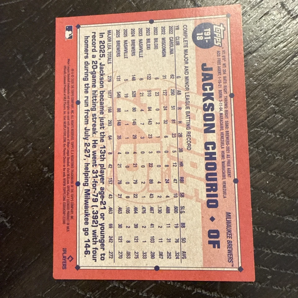 2026 Topps Series 1 - 1991 Topps Baseball Jackson Chourio #T91-18