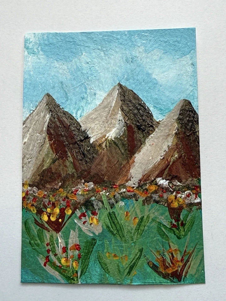 Original ACEO Abstract Mountain Landscape 3.5”x2.5” Painting Natasha Curry