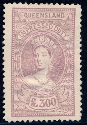 99c START! Australia 1895 Queensland Revenue BF62, £300 Impressed Duty stamp NG