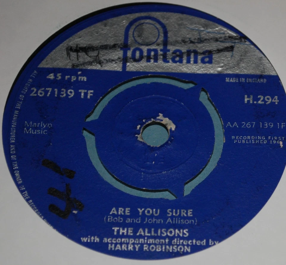 The Allisons – Are You Sure 7" Single 1961 - Read Listing