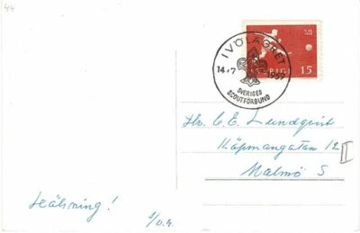 SWEDEN SVERIGE 1959 15 ORE WORLD CUP FOOTBALL IVOLAGRET SCOUT CANCEL POSTCARD