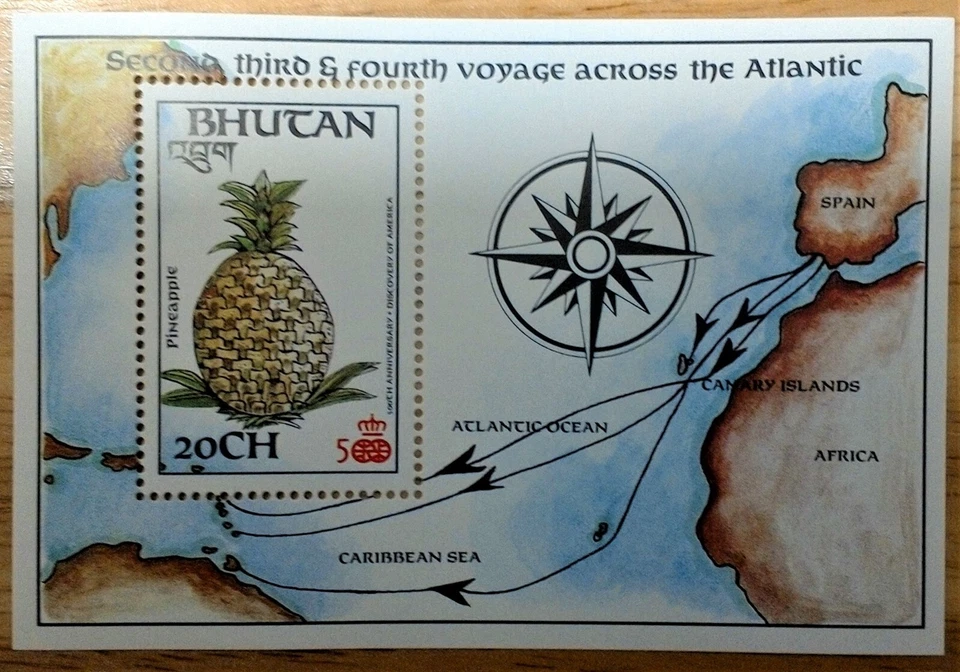 VINTAGE CLASSICS Bhutan 1987 - Atlantic Voyages, Pineapple - Souvenir Sheet MNH