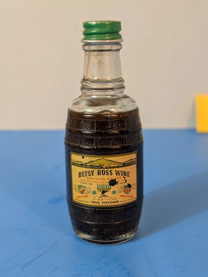 Lot of 2 Vintage Betsy Ross Wine Bottles (Cella Vineyards) — Barrel Shape, 1950s