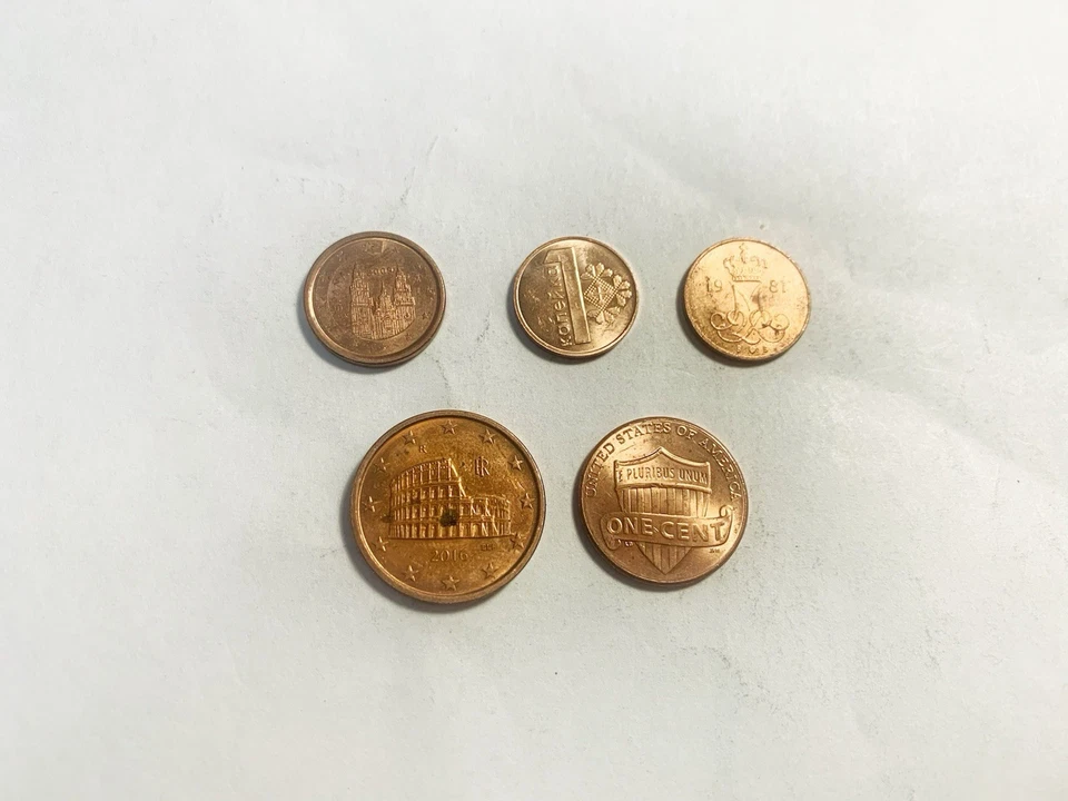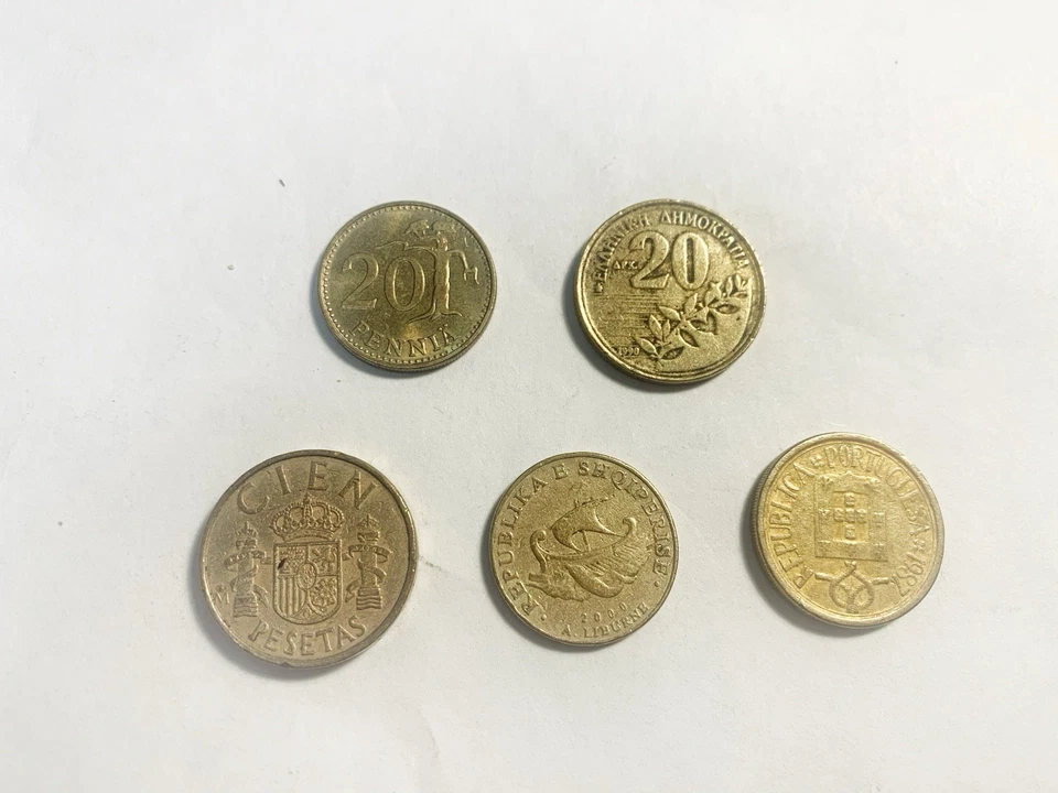 Lot of 5 Vintage European Coins – Spain Greece Portugal Finland Albania Copper