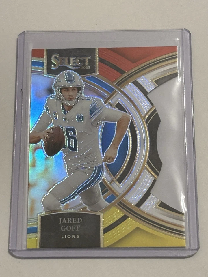 Jared Goff 2023 Panini Select - Premier Level Red & Yellow Prizm Die-Cut #178