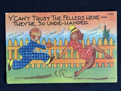 Y'Can't Trust The Fellers Here, They're So Undie-Handed, Linen Postcard 1940-50s