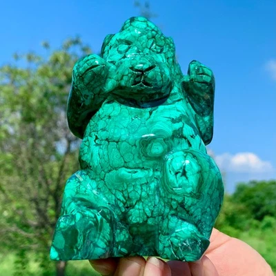2.11LB Natural glossy Malachite Crystal Hand-carved Orangutan mineral sample hea