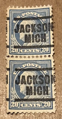 VERTICAL PAIR JACKSON MICH PRECANCEL JUMBO TYPE 203 1912-19 20 CT FRANKLIN PBC