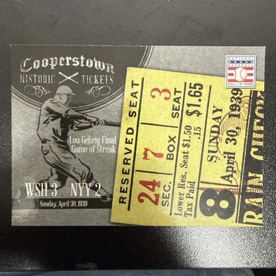 2013 Panini Cooperstown Historic Tickets #22 Lou Gehrig - BB
