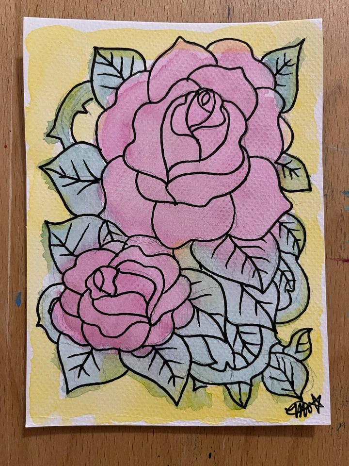 Double Roses Original Watercolor Painting By Nachanita Art ACEO OOAK flowers