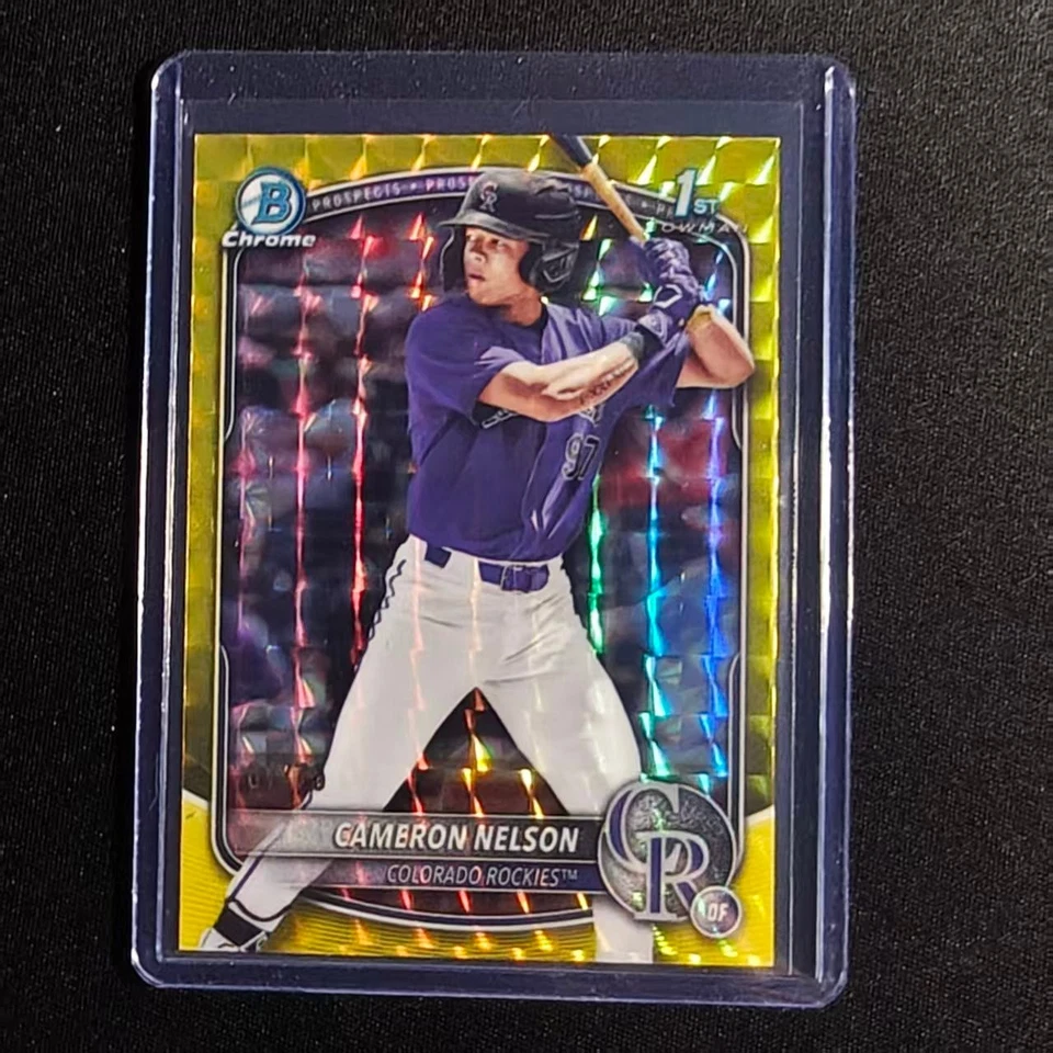 🔌IU 2025 BOWMAN DRAFT CHROME PROSPECT 1ST YELLOW GEOMETRIC /75 CAMERON NELSON