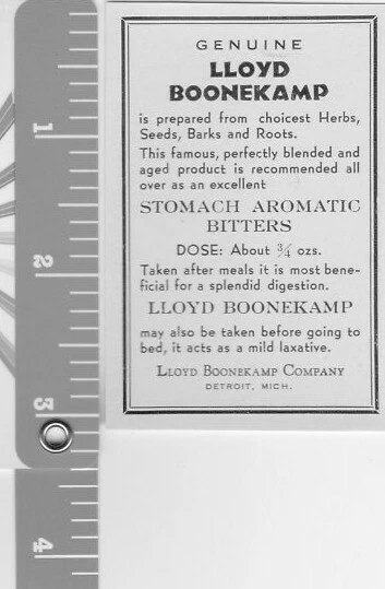 1 ONE LLOYD BOONEKAMP stomach bitter -bitters - labels small Detroit Michigan