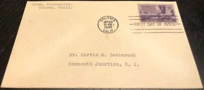FDC First Day Cover 1948 Scott# 954 California Gold Centennial from Postmaster