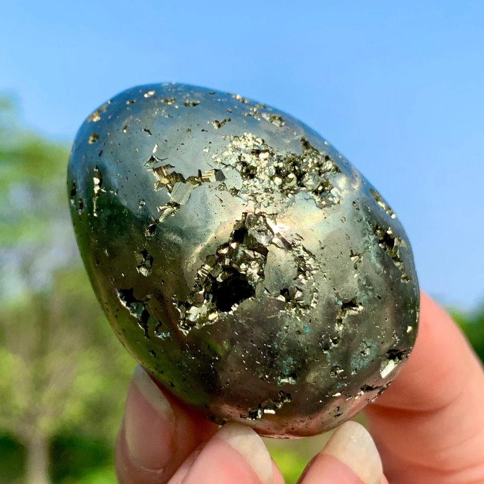 149G AAA Grade Natural Chalcopyrite Quartz Egg Crystal Mineral Reiki Healing
