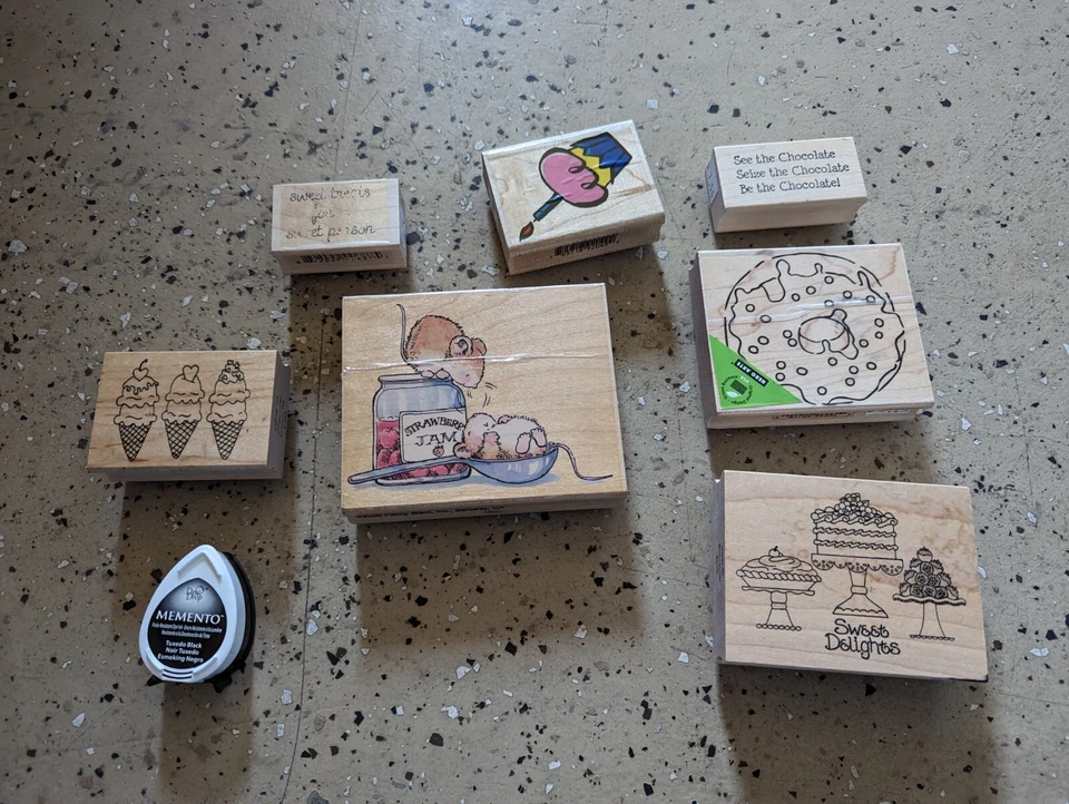 7 Sweet Jam Ice Cream themed rubber stamps and ink