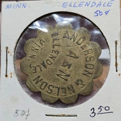ANDERSON & NELSON A & N tiny town of ELLENDALE, MINNESOTA 50 CENTS TRADE Token