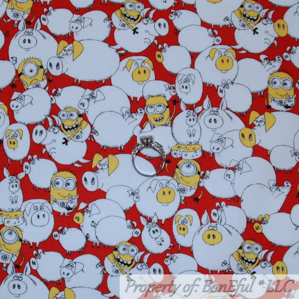 BonEful FABRIC Cotton Quilt B&W MINION Movie Yellow Pig Farm Scenic Print SCRAP
