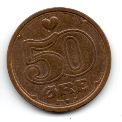 Denmark 1990, Crown of Christian V (1646-1699) in center, 50 ØRE 3