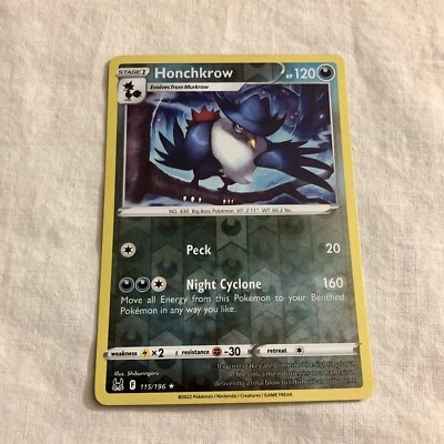 Honchkrow 115/196 Reverse Holo Rare SWSH11 Lost Origins NM Pokemon card
